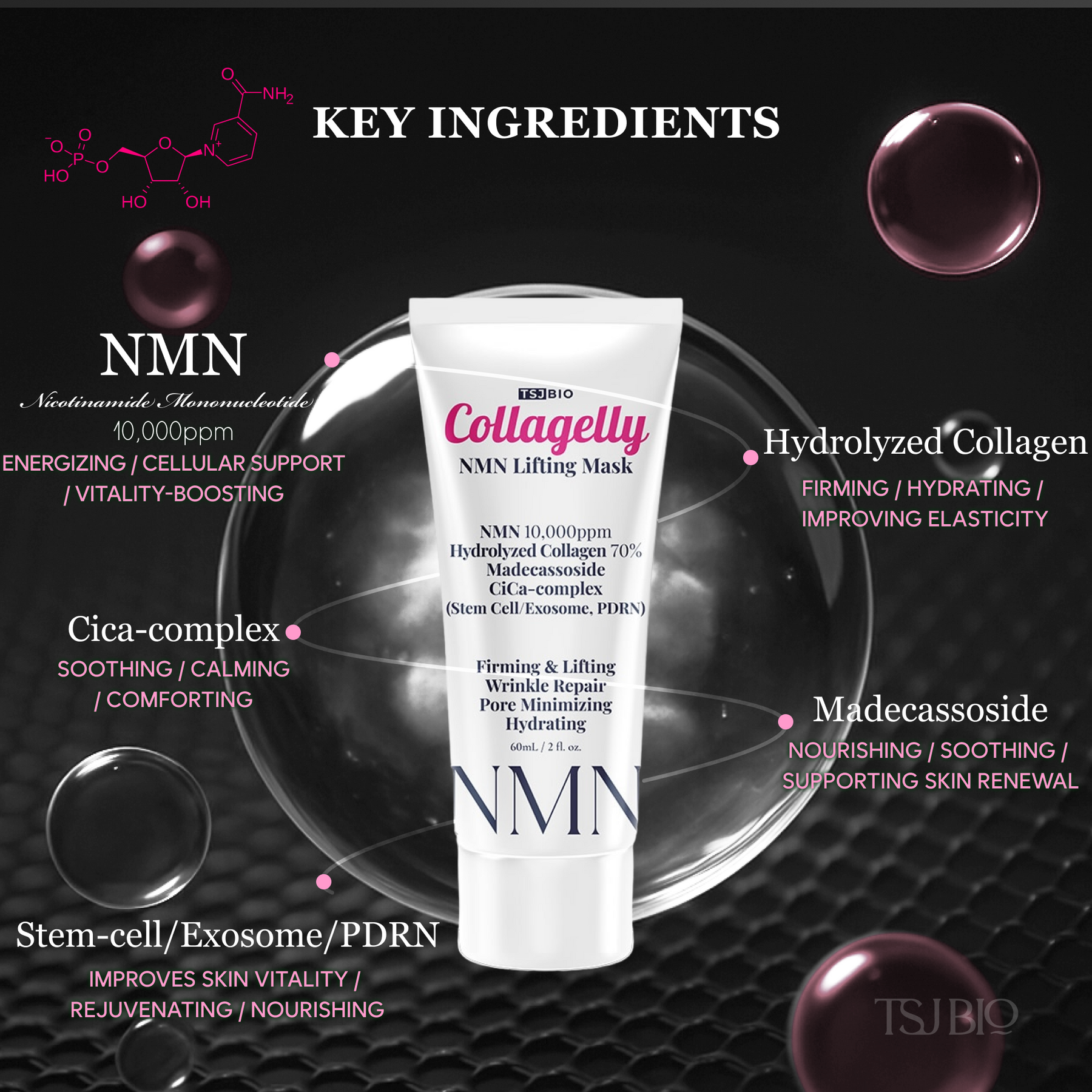 At the heart is NMN - learn all about it HERE - it's the breakthrough molecule that fuels your body’s natural NAD+ production. NAD+ is essential for repairing DNA damage, restoring collagen, and keeping cells young and resilient. Available topically in the U.S. for the first time, this mask delivers instant results without the irritation common with retinol or tretinoins — making it a true next-generation anti-aging solution.